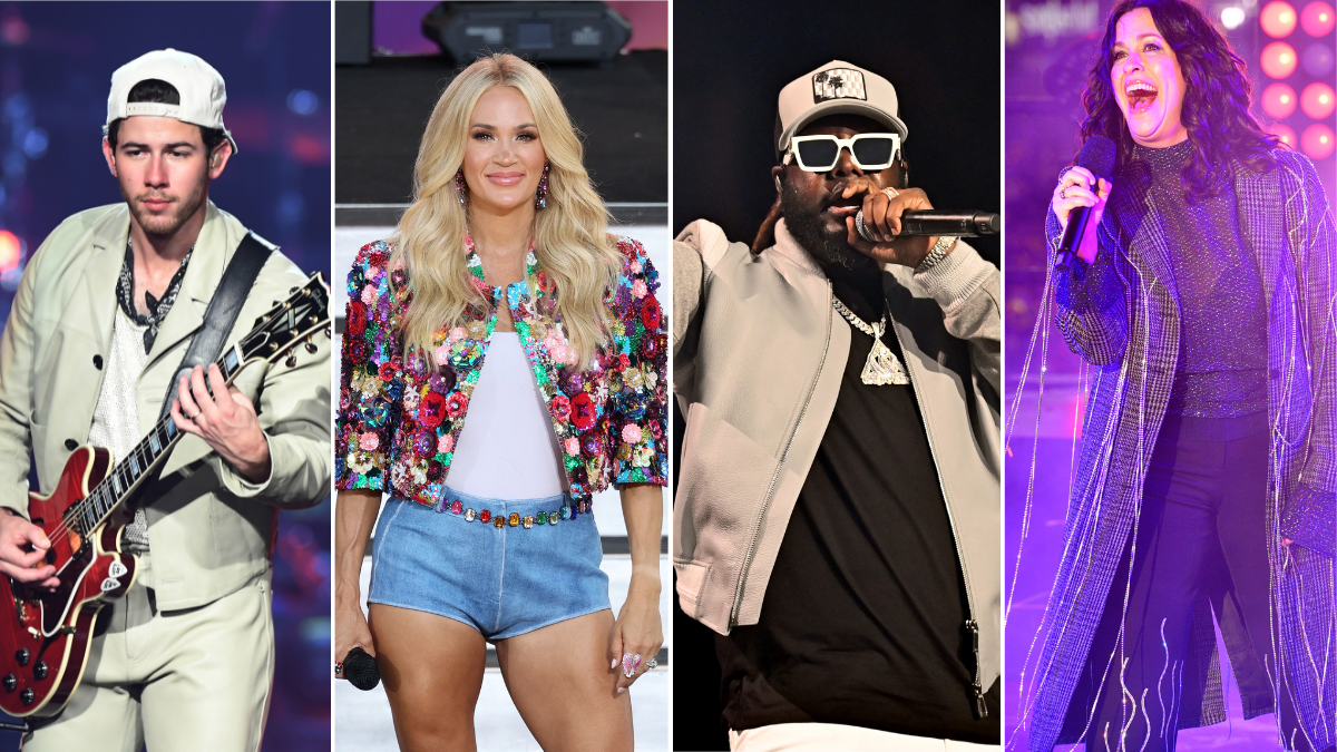 Performing during the New Year's Eve festivities to help ring in 2025 are Alanis Morisette, Blake Shelton, Carrie Underwood, Cody Johnson, Dasha, Ernest, Hardy, Jonas Brothers, Kesha, Laufey, Lenny Kravitz, Luis Fonsi, Megan Moroney, Natasha Bedingfield, Reneé Rapp, Sophie Ellis Bextor, T-Pain, Teddy Swims, Thomas Rhett, Tinashe, TLC and more.